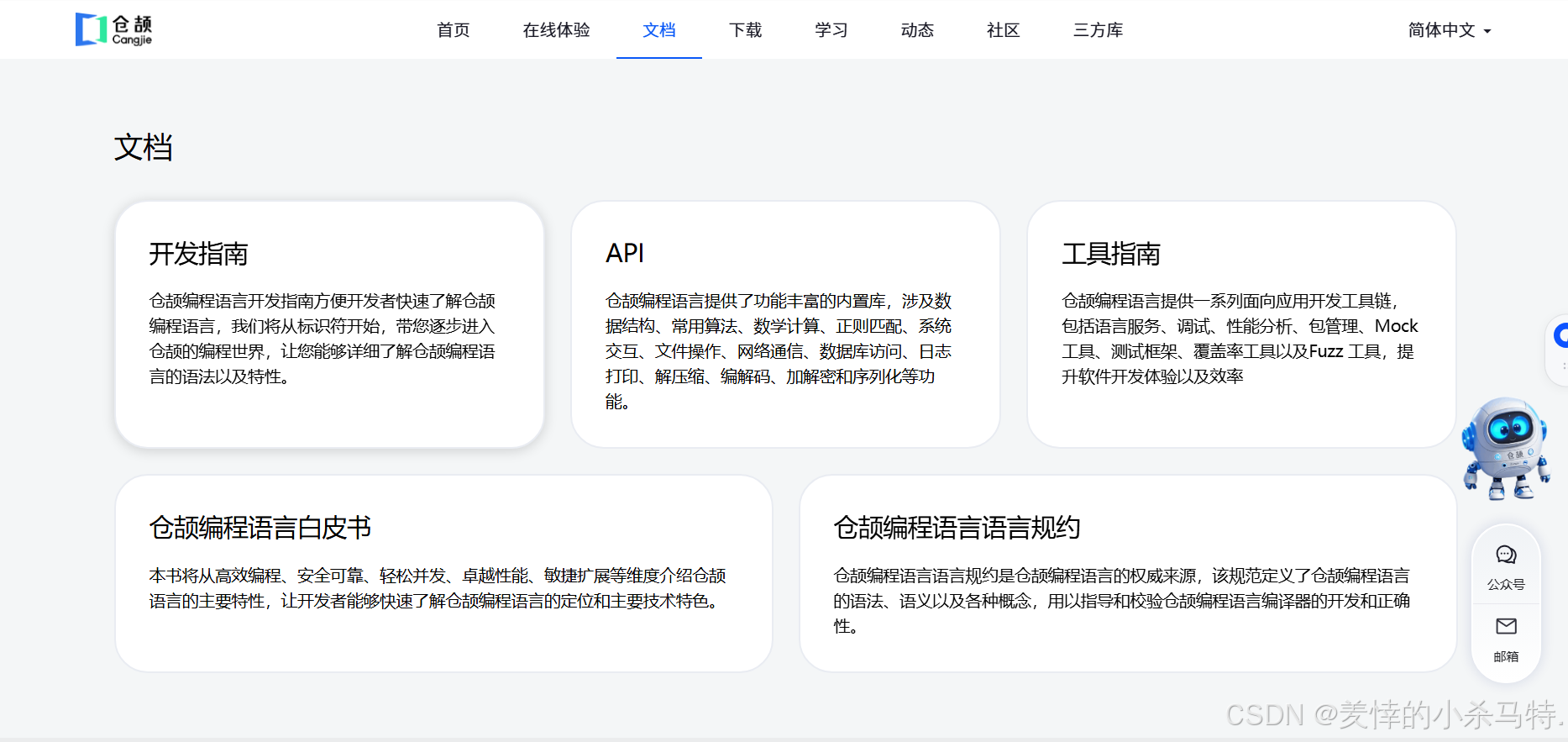 - 仓颉编程语言官网文档板块为开发者提供开发指南、API、工具指南、白皮书及语言规约等资源,助力其深入了解仓颉语言,提升软件开发效率与质量。