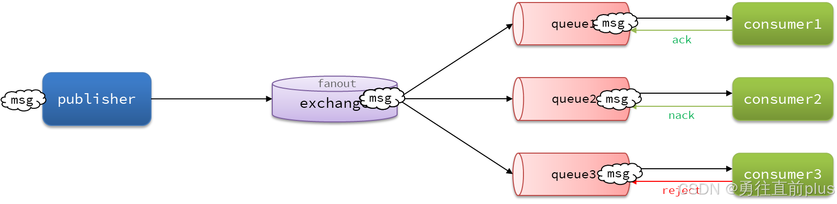 - ack:成功处理消息,RabbitMQ从队列中删除该消息