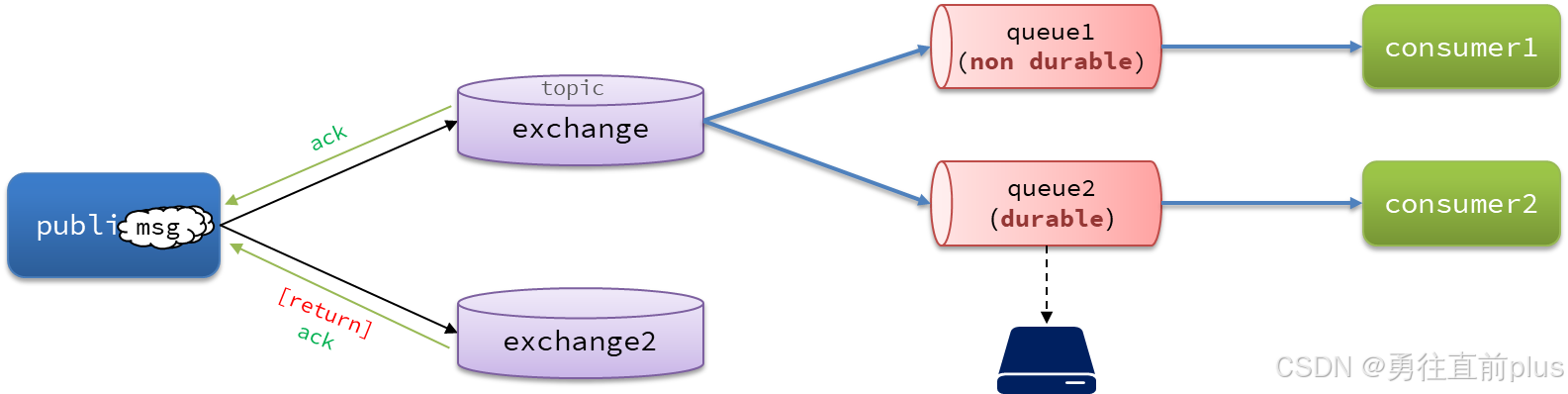 - 消息成功转发到交换机,Broker 返回的确认ACK回执 ,投递失败则会返回NACK回执