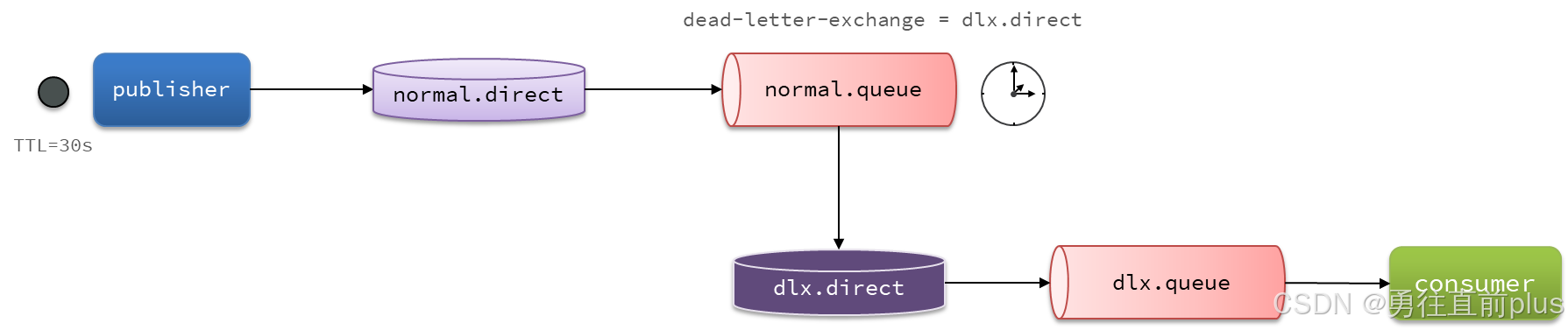 - 要让死信队列生效,我们需要对原始队列(即正常处理业务的队列)配置核心参数x-dead-letter-exchange(DLX):指定当有消息成为死信时,应该将这些消息发送到哪个死信交换机,然后死信交换机将死信路由到死信队列,并由专门处理死信的消费者处理。