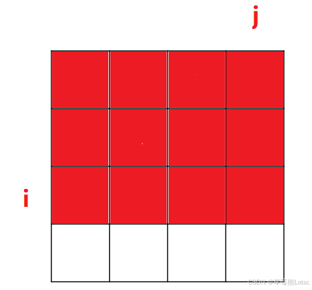 sum[i][j]表示,从【0,0】位置到【i,j】位置这段区域内,所有元素的累加和。对应下图的红色区域: