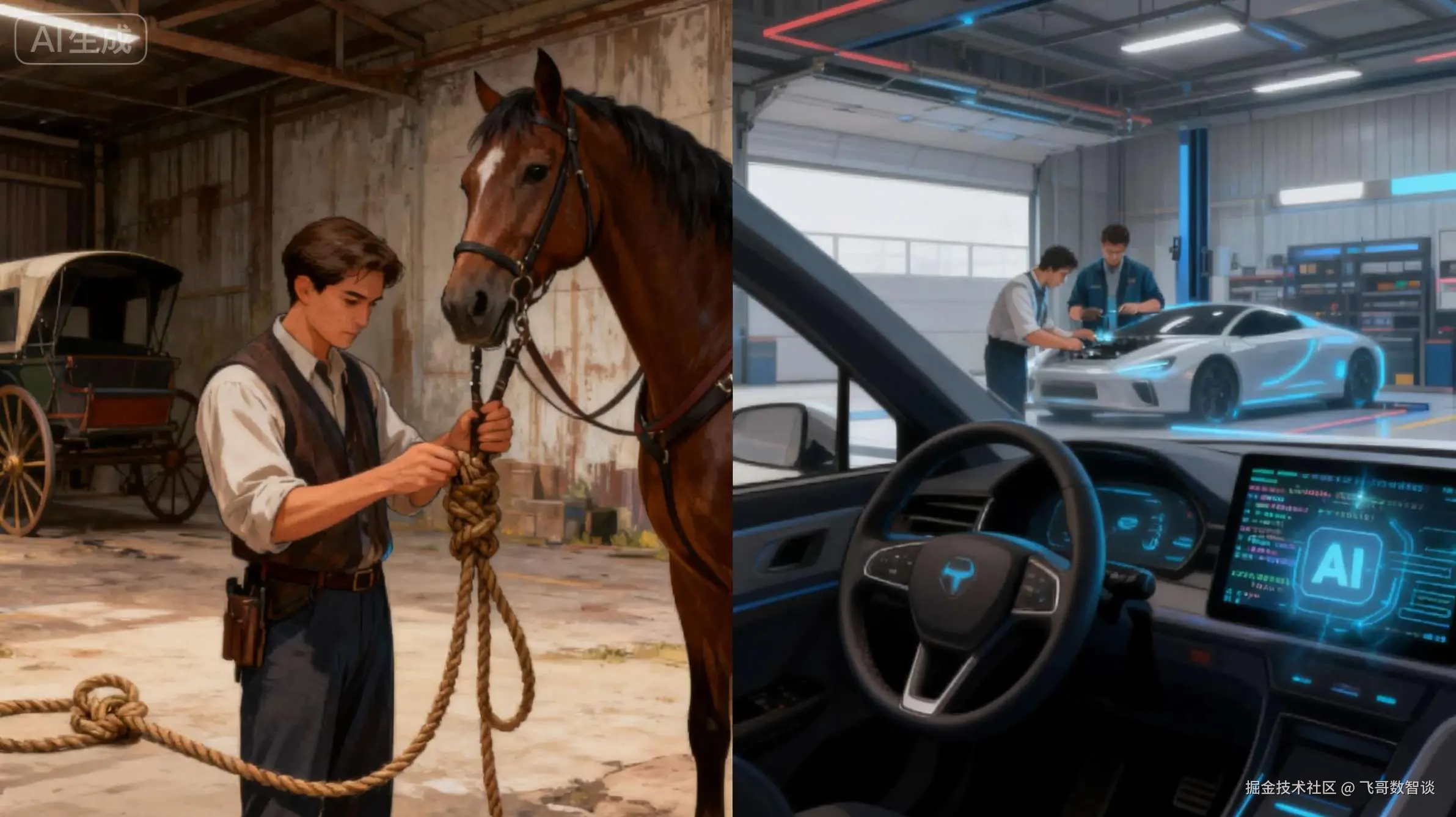 于是我想:我们坚持了几十年的工程美学,会不会正变成一种"仪式感"?就像马车时代讲究缰绳打结的方式,而汽车根本不需要缰绳。