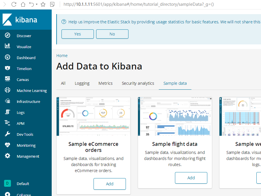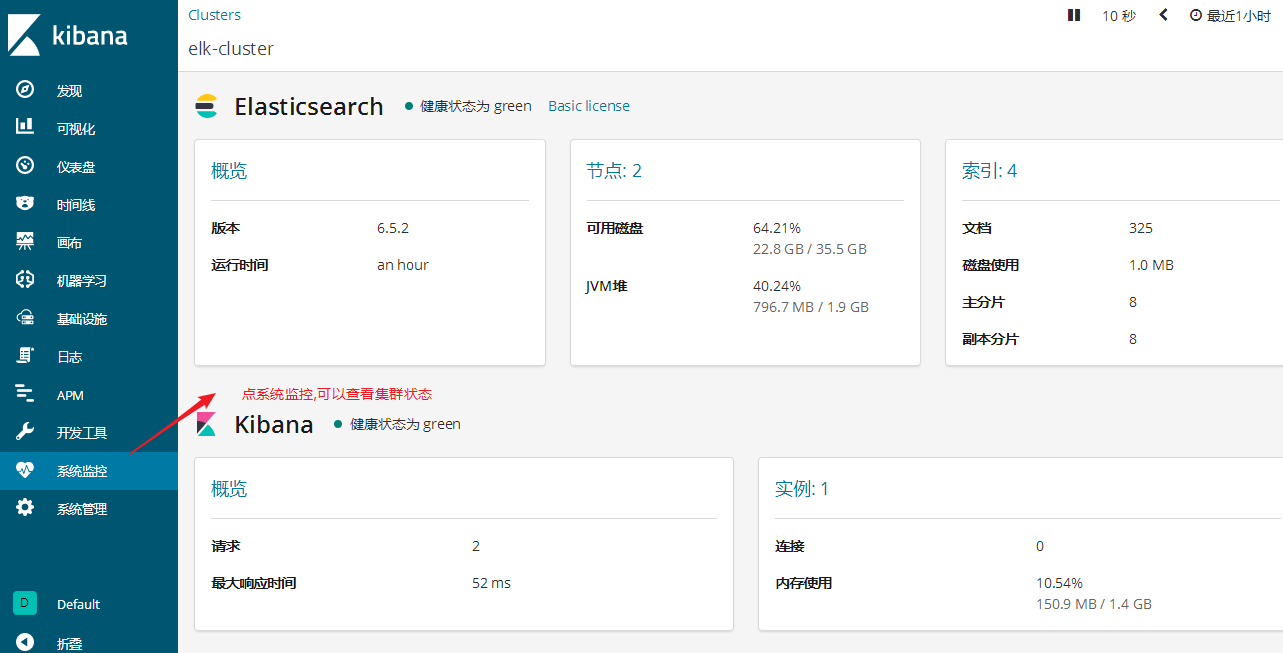 再次通过浏览器访问 http://kibana 服务器IP:5601
