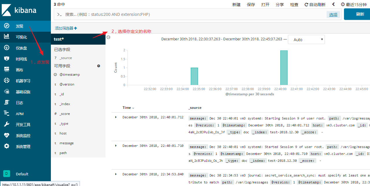 第6步:在kibana创建索引模式(过程省略,参考上面的笔记操作),然后点发现验证