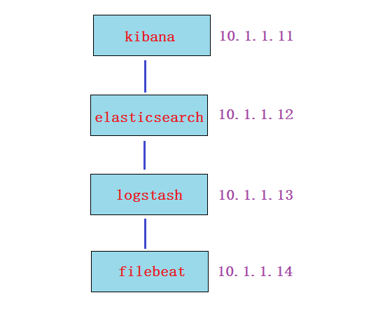 Filebeat (10.1.1.14) → Logstash (10.1.1.13) → Elasticsearch (10.1.1.12) → Kibana (10.1.1.11)