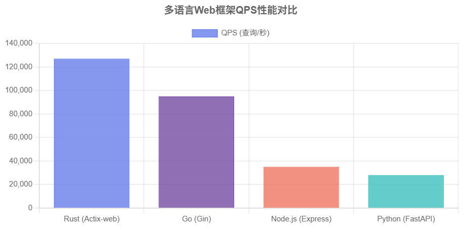 通过Apache Bench进行压测,对比Rust、Go、Node.js和Python实现的相同功能API: