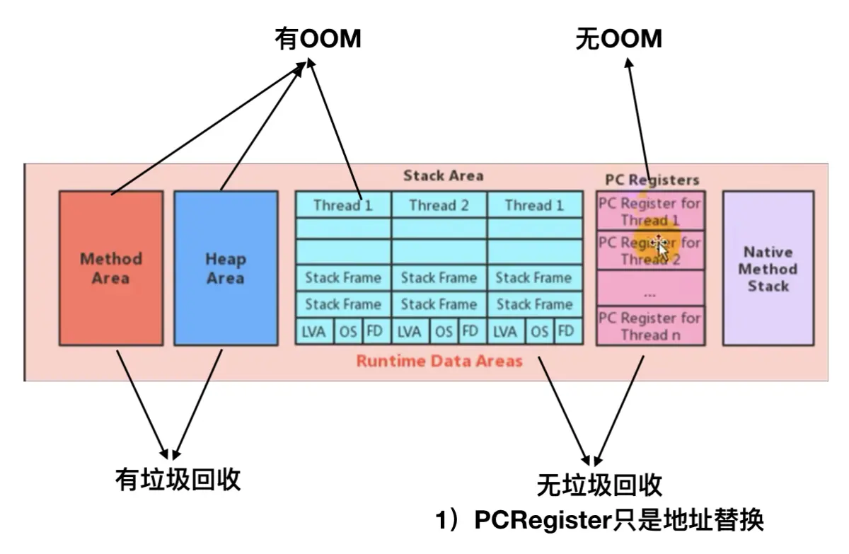 1)PCRegister没有【OOM】和【垃圾回收】
