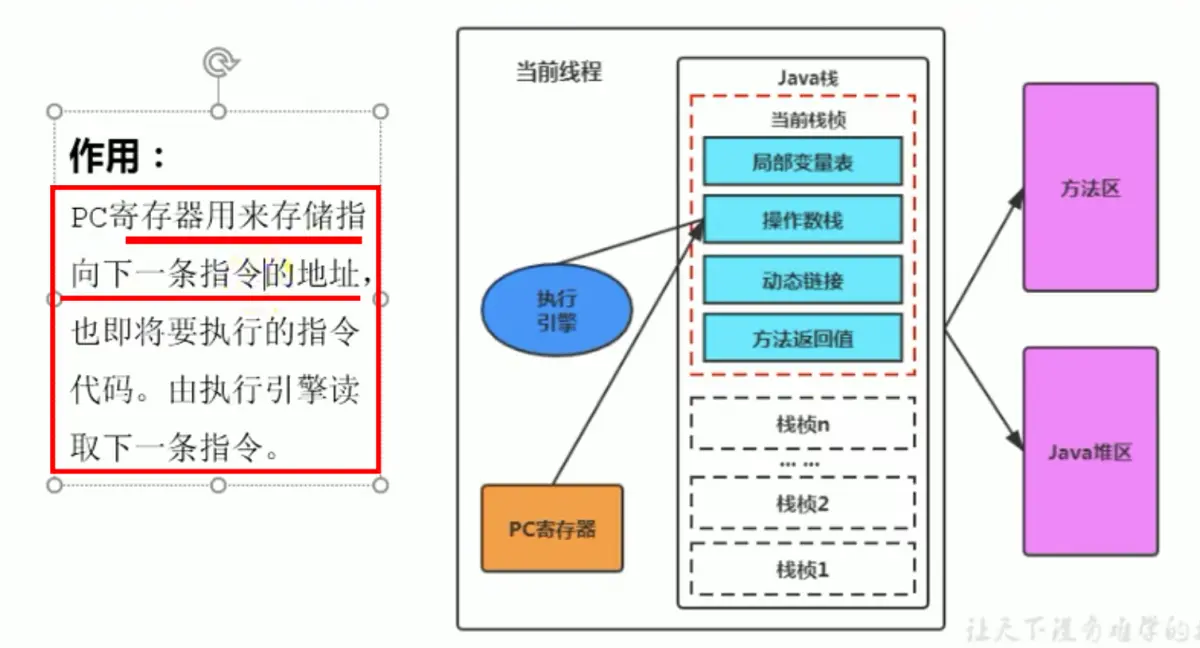 2)PC Register->可以理解为【软件层面的一个存储->存储当前线程指定的内容】