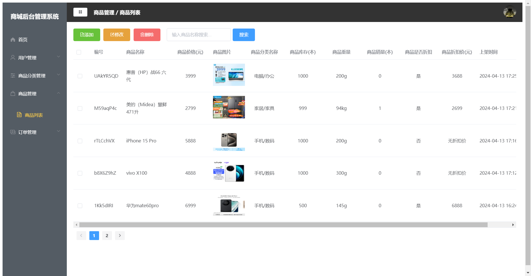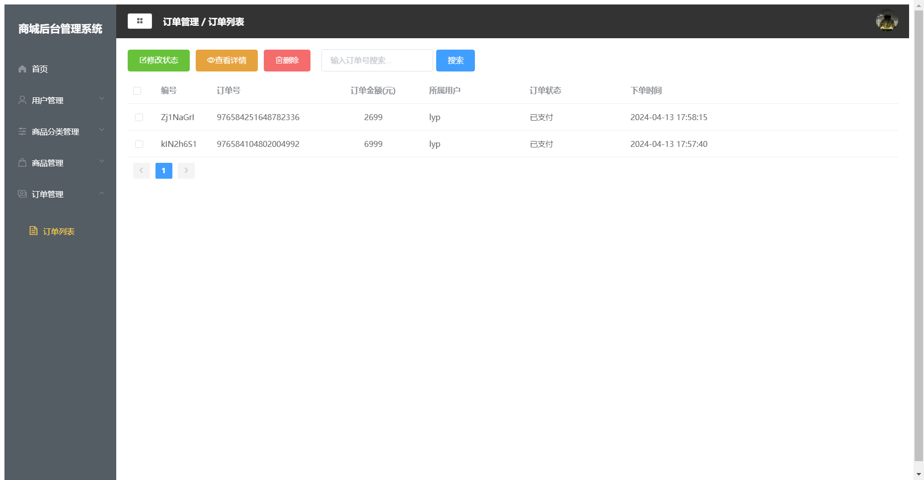 4.订单管理:修改状态、查询详情、分页查询、删除
