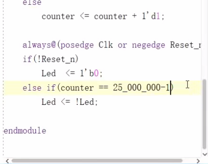 这个时间还多了20ns,是clk的时间,这个计数器从最大值25000000变为零也要消耗一个时钟周期的时间