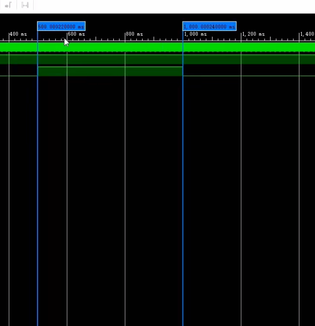 选择第一个蓝线,可以看到下面出现了蓝色的时间点,这就是两个蓝线之间的时间间隔