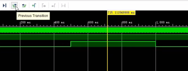 先通过复位将D触发器设置为零,在仿真时间线上往后推移201ns,多等一纳秒是为了避免与时钟信号产生冲突从而无法理解波形