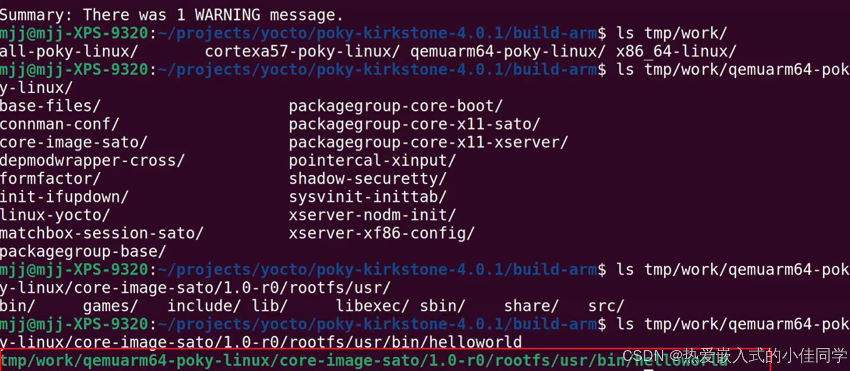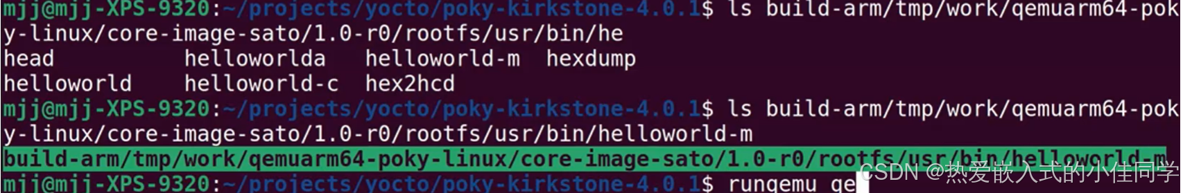 编译成功后在临时工作区可以找到该程序,不过还没打包到系统,我们添加 bbappend 追加到系统自带的镜像: