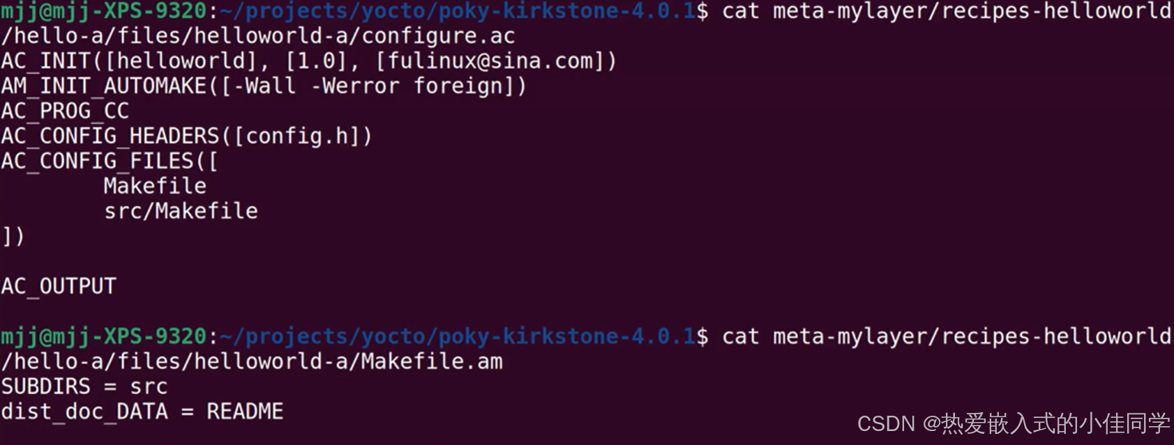 configure.ac 和 helloworld-a/src/Makefile.am: