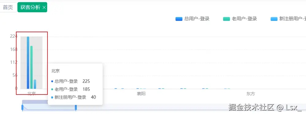 如图所示,由于图表联动需求,选中图表中某一列数据,可联动其它图表数据进行渲染。