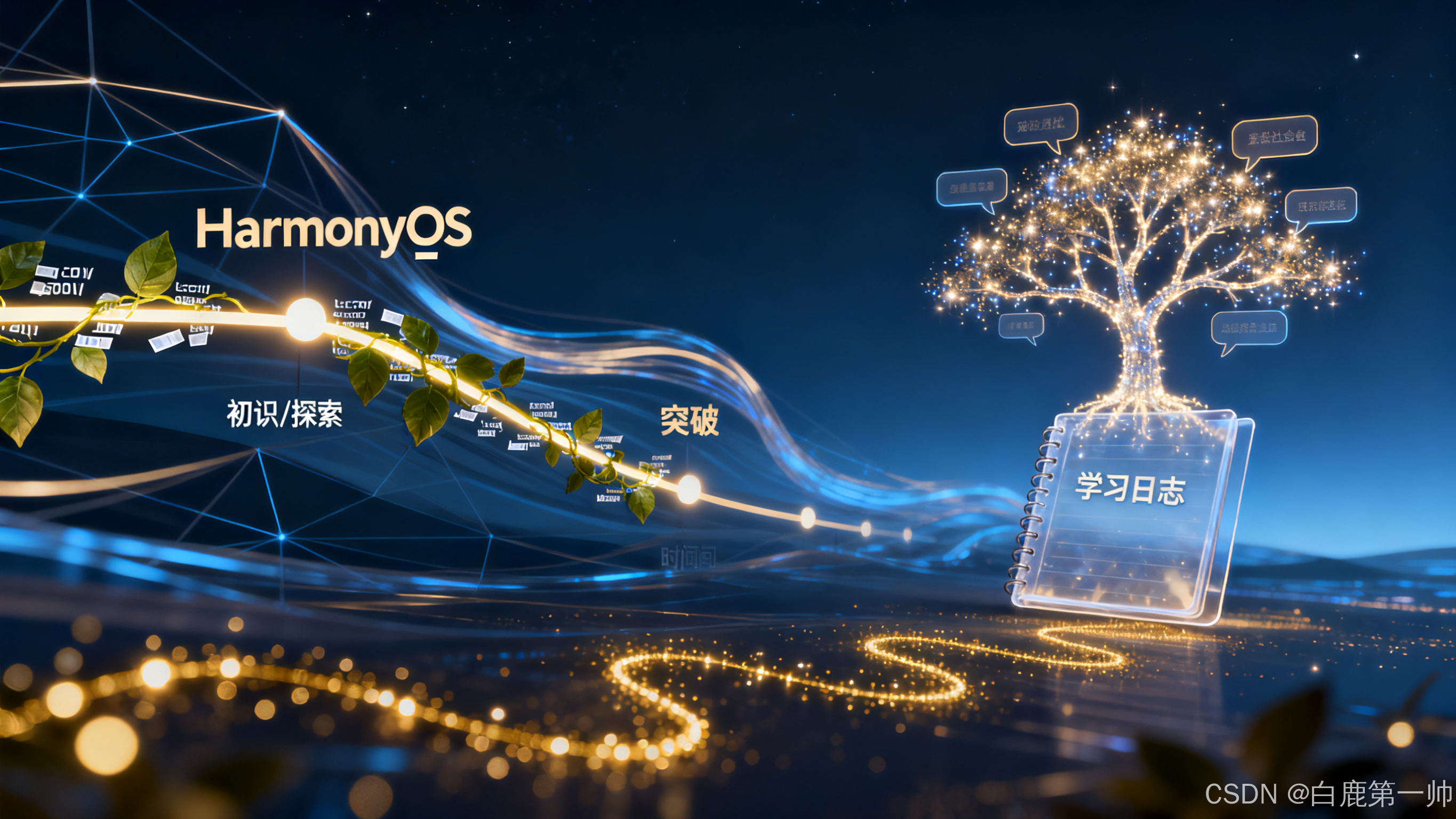 每个技术人都有自己的学习故事,每个故事都值得被记录。这篇文章记录了我从零基础到独立开发 HarmonyOS 应用的完整学习历程,以及在社区中成长的点点滴滴。2024 年 10 月我第一次接触 HarmonyOS 被它的技术创新所吸引,30 天后完成了第一个应用,3 个月后已经可以独立开发复杂应用并在社区中分享经验,这个过程充满挑战也收获满满。在这个学习之旅中,我非常幸运地遇到了优秀的领路人------程诗杰老师(西南"社区之光"、蜀鸿会代言人)和三掌柜(CSDN 上海站负责人、多年的社区运营伙伴),他们的指导和帮助让我少走了很多弯路。本文将分享 30 天学习计划和实践过程、从入门到实战的完整历程、参加社区活动的真实体验、学习方法总结和避坑指南、领路人的指导和帮助以及个人成长和收获,为 HarmonyOS 初学者、想系统学习新技术的开发者、对社区活动感兴趣的开发者以及寻找学习方法的技术人提供系统的学习路线、实用的方法技巧、真实的经验心得、避坑指南和问题解决方案、社区活动参与建议以及职业发展启发。