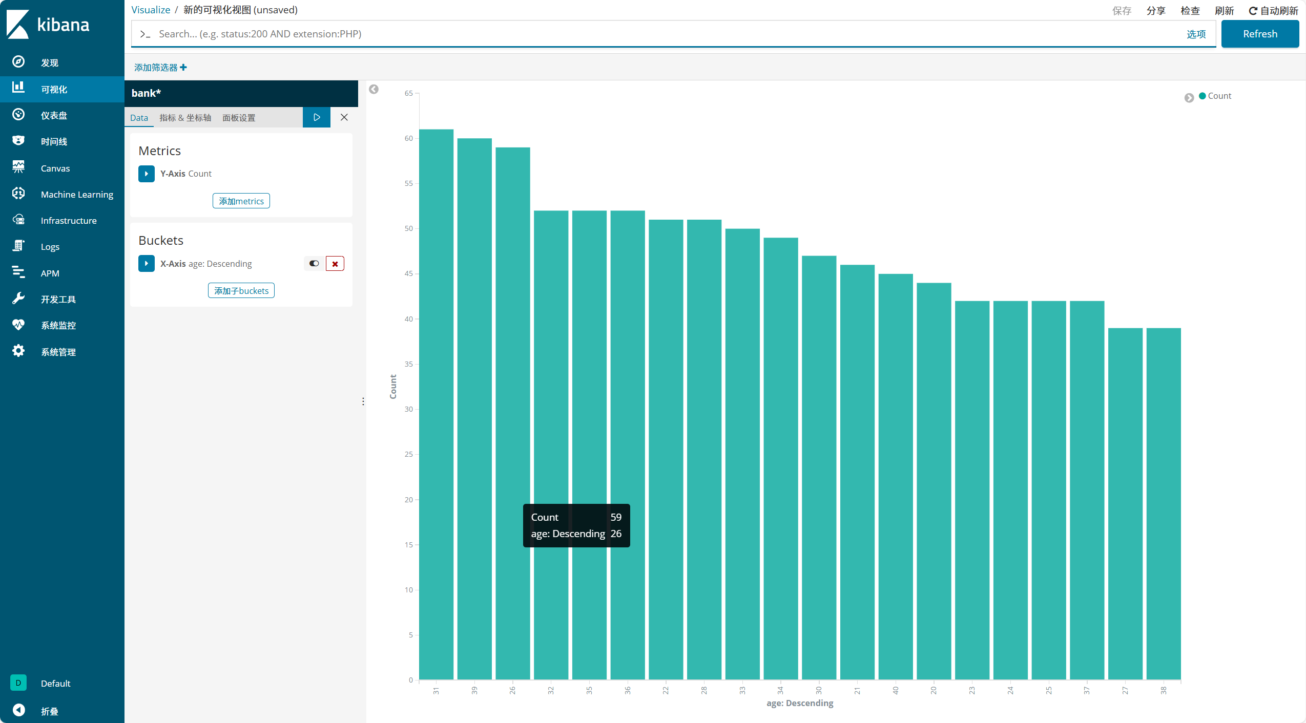 status:200 AND extension:PHP筛选特定日志) - 配置图表参数(如 X 轴选择