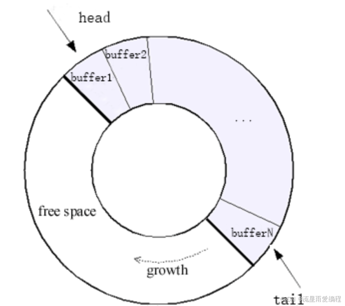 QRingBuffer实现的环形缓冲区大概如下图所示: