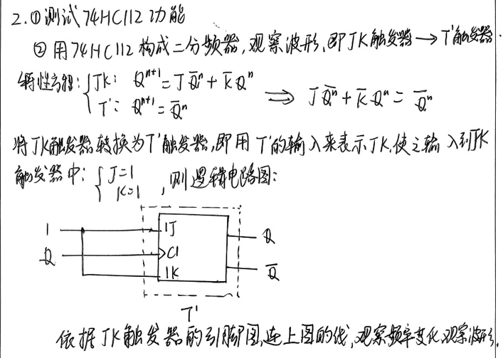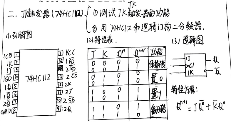 三、任务2:74HC112(JK触发器)的测试与二分频器设计