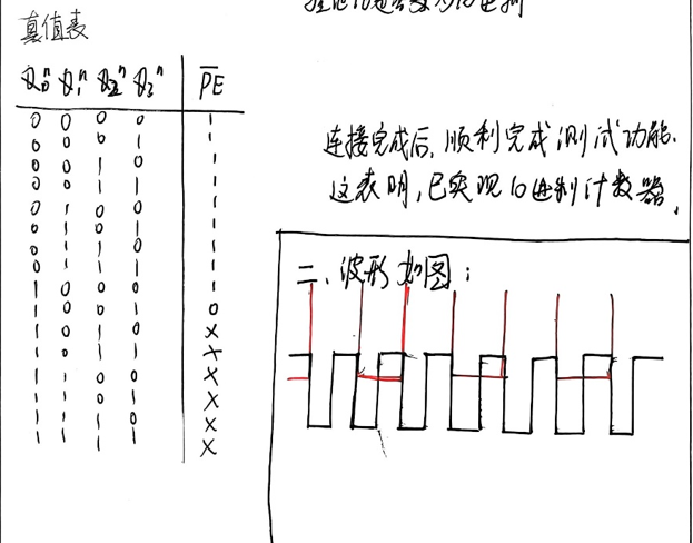 - 异步清零时与非门接错引脚:10进制计数器要监测1010(Q3=1、Q1=1),别接成Q2或Q0,否则会在错误状态清零(比如计到6就清零)。