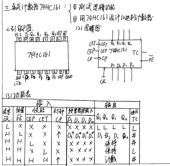 四、任务3:74HC161(计数器)的测试与10进制计数器设计