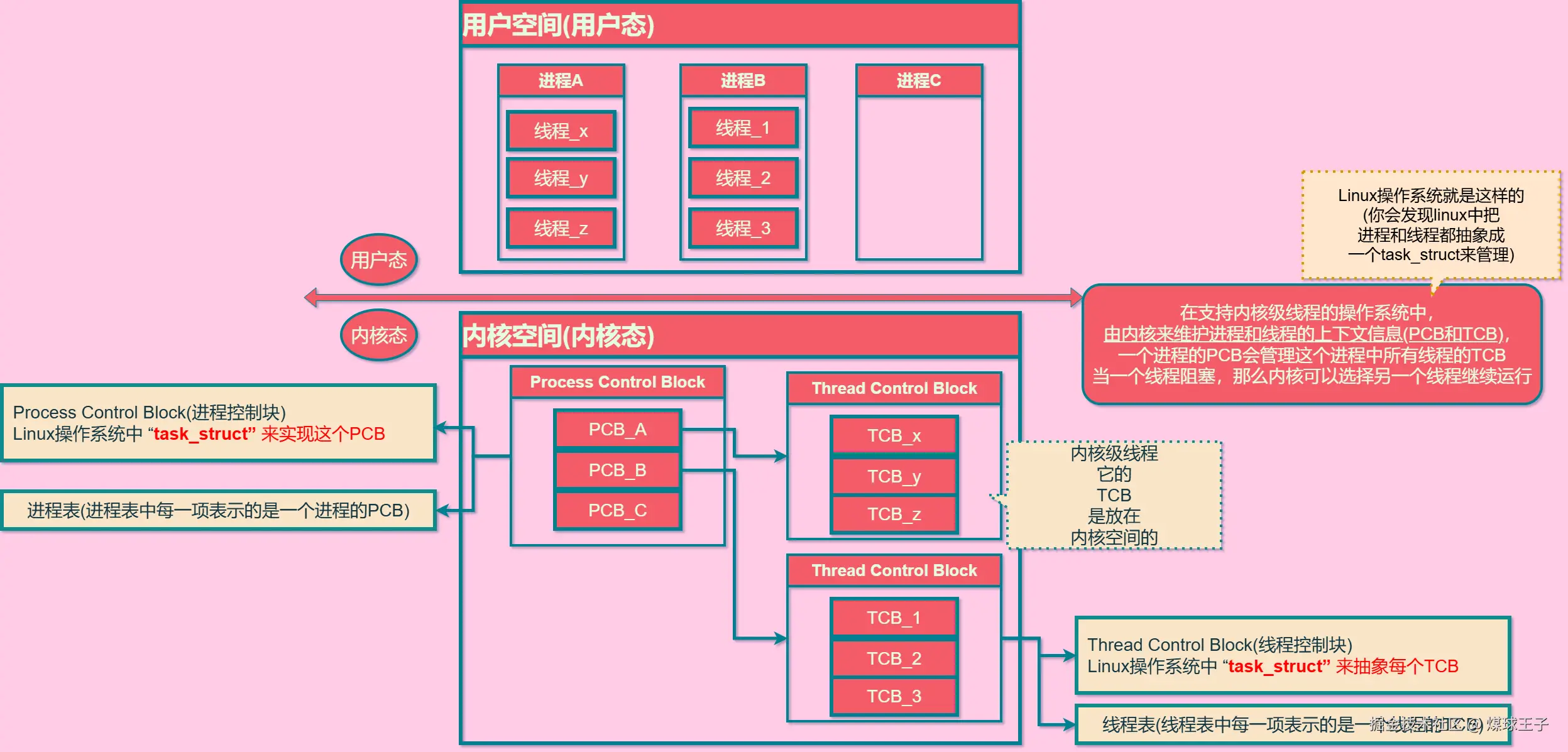 a.4 Linux 操作系统内核中,线程和进程使用相同的状态描述