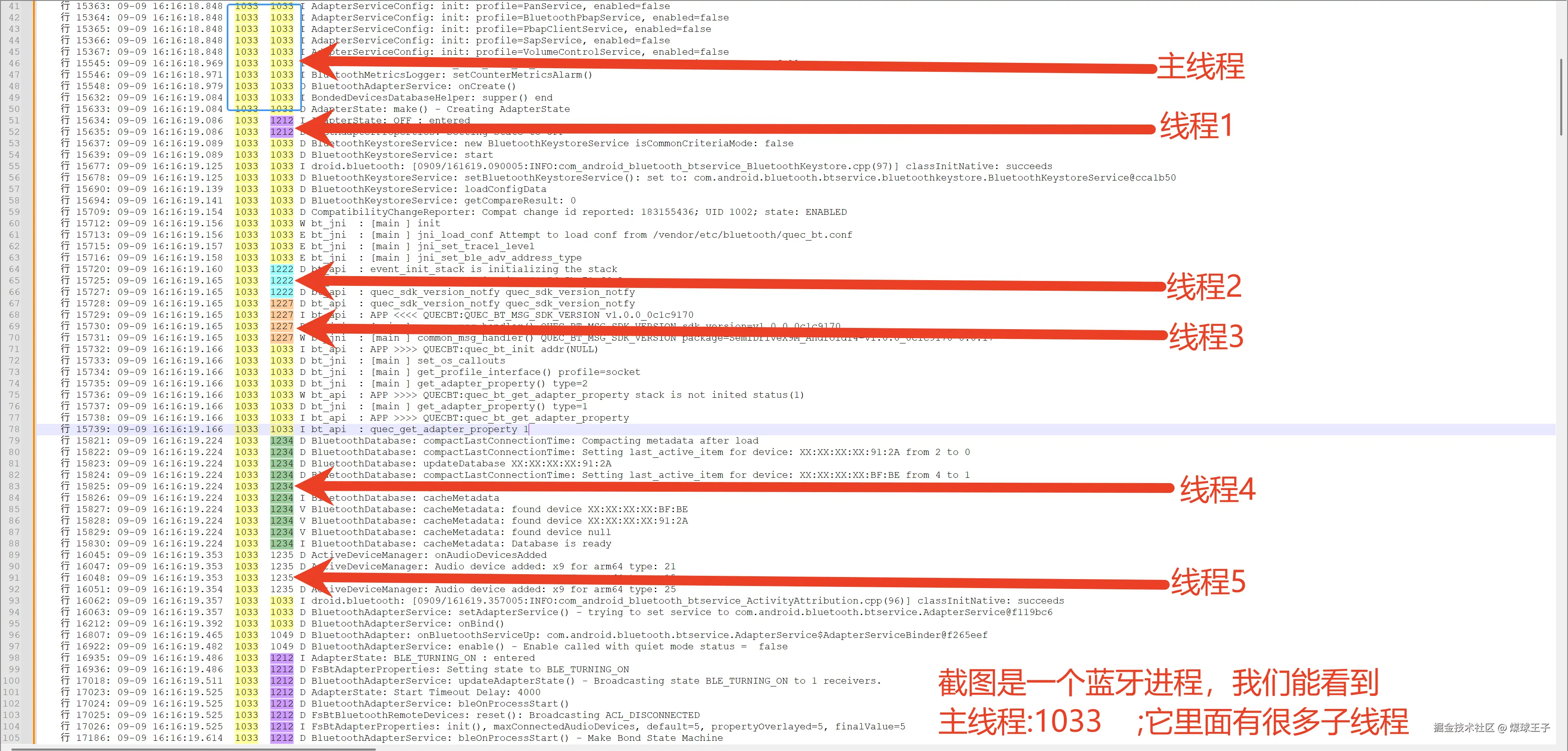 比如:下图是日常分析问题的Log日志, 从Log中我们也能看得出进程中有很多线程