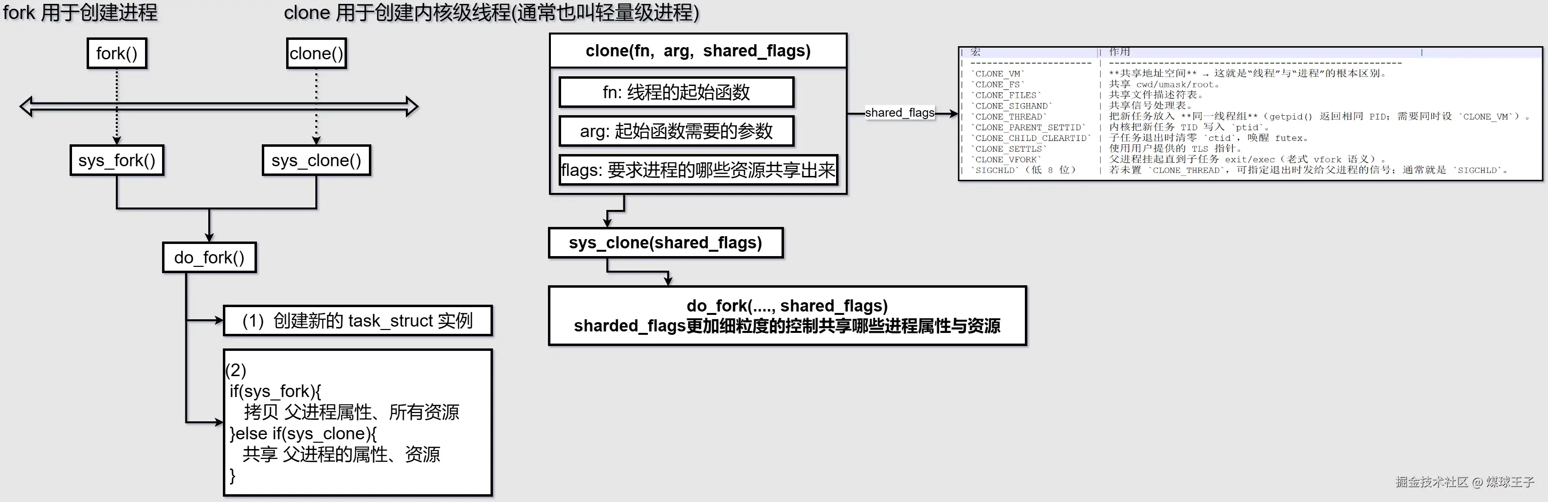 (1) 线程直接共享进程的所有资源(如:mm_struct), 创建线程比创建进程要快10~100倍