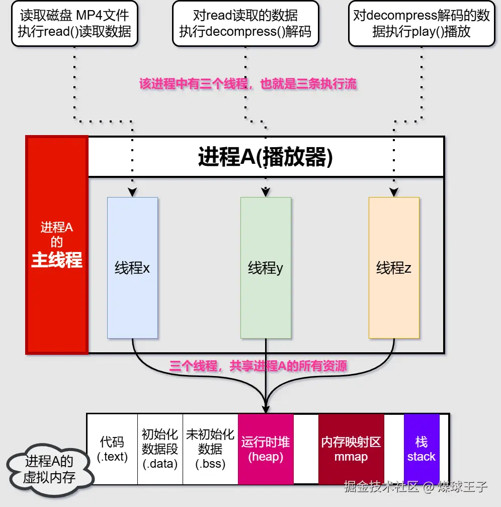 (2) 线程之间共享相同的地址空间(mm_struct), 这样利于线程之间数据高效的传输
