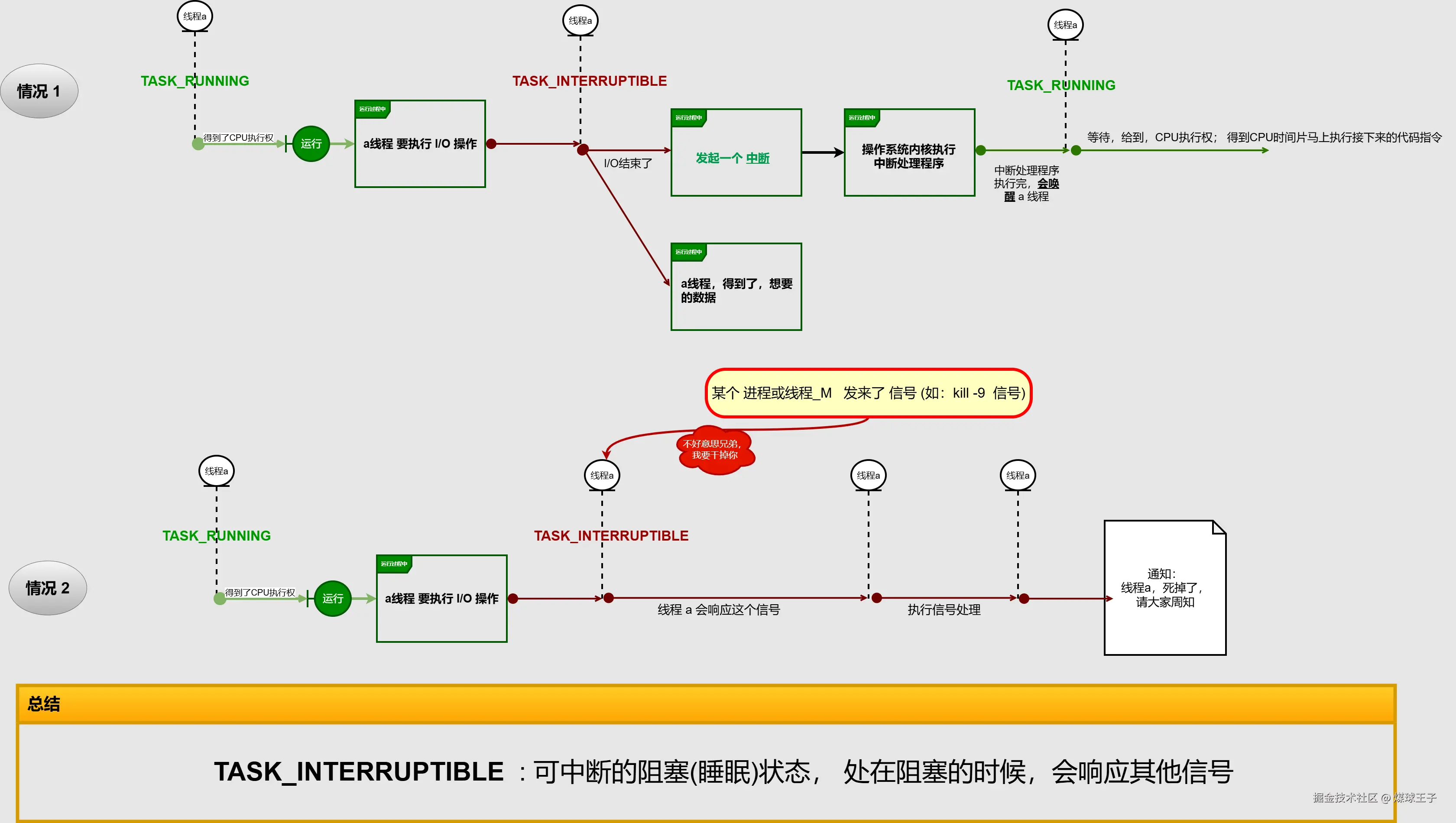 (1) TASK_INTERRUPTIBLE 可中断的阻塞(睡眠)状态: 阻塞(睡眠)的时候,会响应其他信号(如: kill)