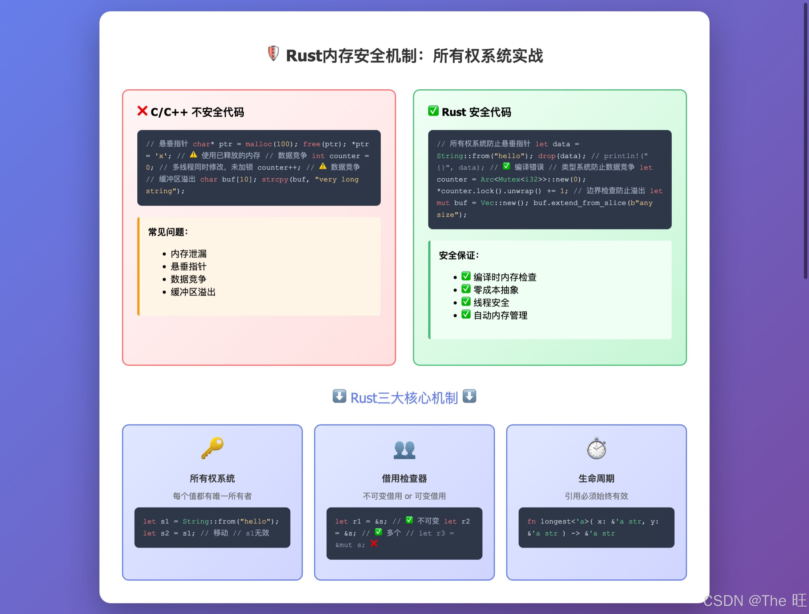 | 内存安全 | 所有权系统 | 无内存泄漏 |