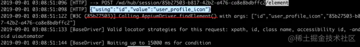 下面使用 curl 命令,在 Appium 上创建一个 session,然后利用这个 session 发送 find element 请求: