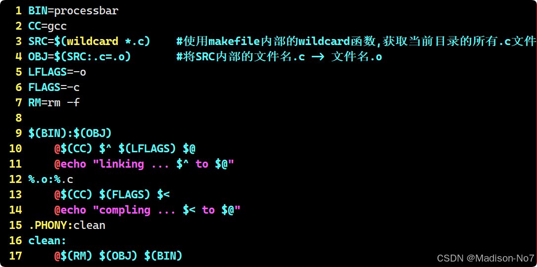 定义完后,使用make命令,就能自动生成processbar可执行程序。 - 在