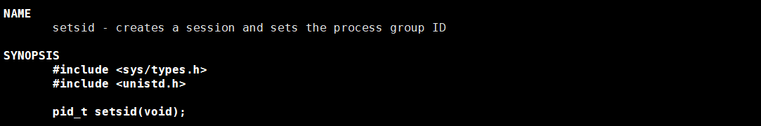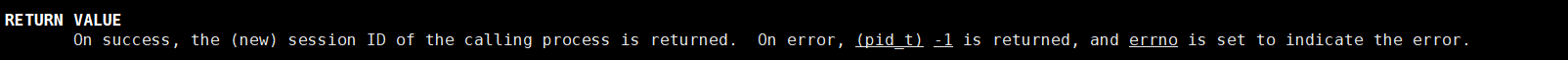 成功的话,新会话的ID就是调用进程的ID,失败返回-1设置错误码。