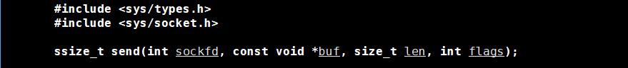 send发送数据,sockfd代表文件描述符,buf发送的数据,len代表发送数据的大小,flags标志位,0默认行为代表阻塞,MSG_DONTWAIT:代表非阻塞操作。