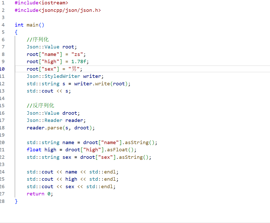 创建Reader类的对象,通过parse函数进行反序列化,将结果写入到Json::Value的对象中,最后在根据键值提取结果即可。