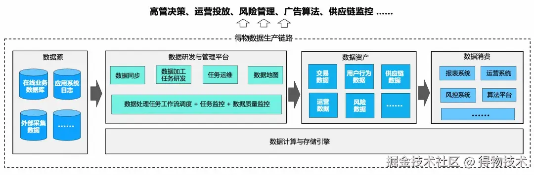 得物作为一家数据驱动型互联网企业,数据使用的效率、质量、成本,极大影响了公司的商业竞争力。而数据链路上最关键的系统是计算存储引擎和数据研发平台。其中计算存储引擎决定了数据的使用成本,数据研发平台则决定了数据的交付效率、数据质量以及数据架构合理性。