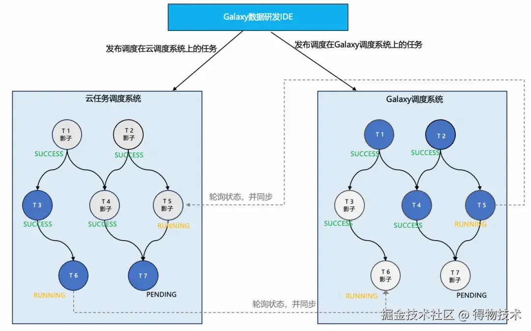 在过去得物的全部数据加工任务全部运行在云上数据平台,因此除了对齐产品能力外,我们还需要将数据加工任务从云平台"平滑"的迁移到Galaxy研发平台。