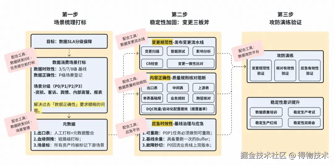 然而过往数仓的数据交付只是停留在快速提供数据以发挥业务价值这一步,业务和研发对数据质量和稳定性保障重视度严重不够,并且没有明确生产变更和数据质量校验的SOP,同时也没有健全的工具体系支撑,全靠数据工程师的自我修养,导致历史上很多核心数据加工任务没有保障或者保障不全面,不断引发P级故障。