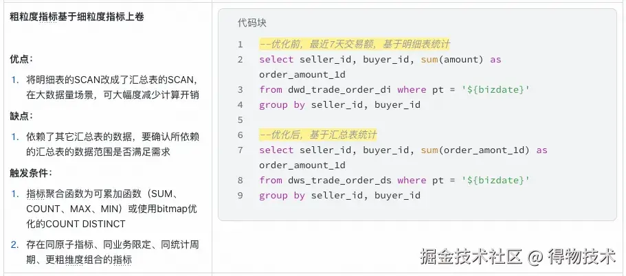 - 提升开发效率:数据工程师无需重复构建维度表和基础事实表,直接复用数仓公共层的成果;同时指标原子要素定义完成后,指标和汇总表的代码全部可以系统自动化生成和优化,大幅提高效率,也减少出错的可能性。