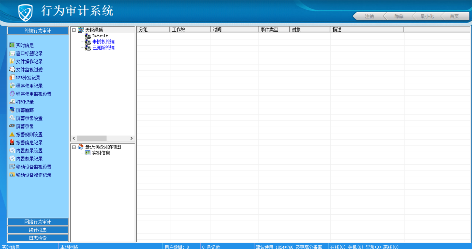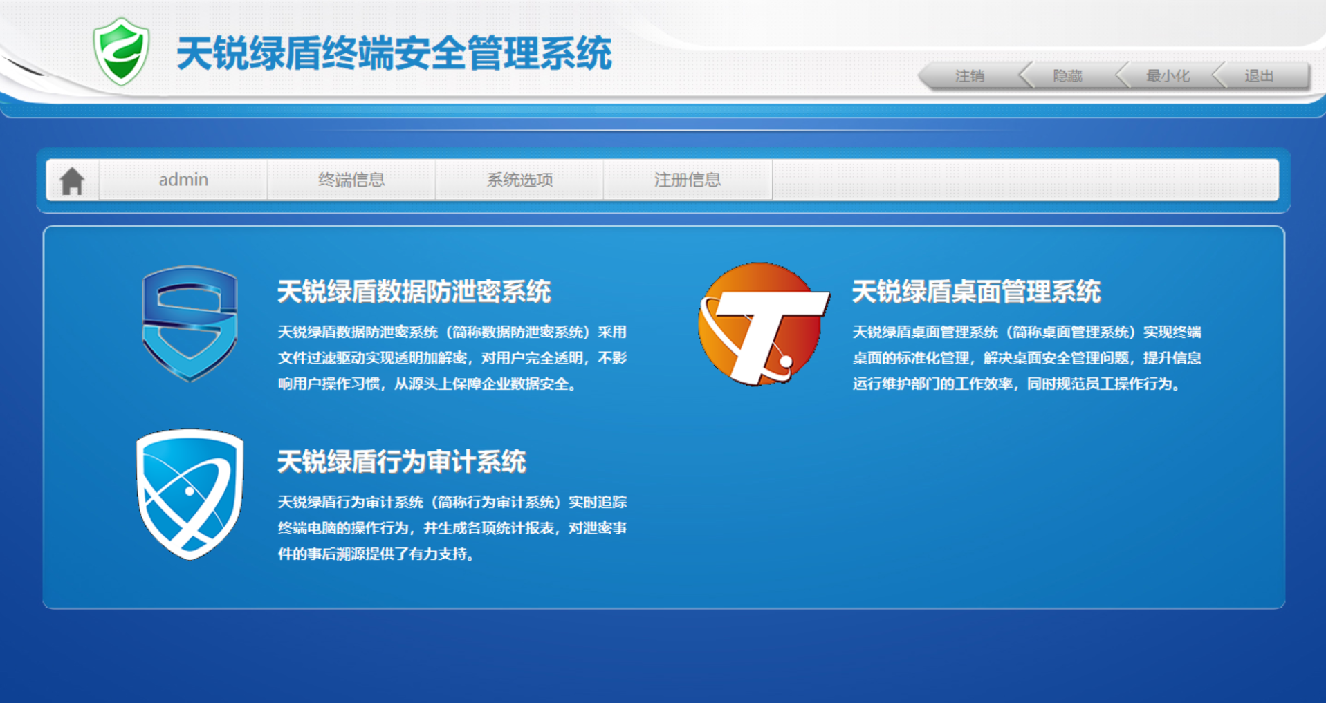 本系统通过对数据的采集分析,实时动态监测终端行为、网络行为和网络流量等,发现和捕获各种敏感信息、违规行为,实时报警等,全面记录网络系统中的各种会话和事件,实现对安全事件的关联分析和评估,为整体终端安全策略的制定提供权威可靠的支持。