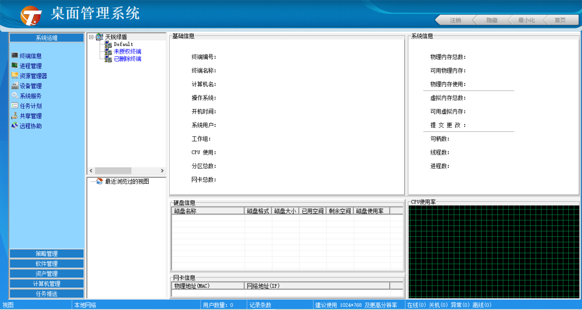 桌面管理系统协助企事业单位管理者对内部计算机、宽带、打印、外围设备等IT资源进行管控,与此同时规范员工的内网行为,其中包括计算机使用行为、网络使用行为、IT资产使用行为、设备使用行为等,令员工活动在合规范围内进行,提高IT资源利用率,提升员工的工作效率,维护系统的安全稳定,让企事业单位内部环境井然有序。