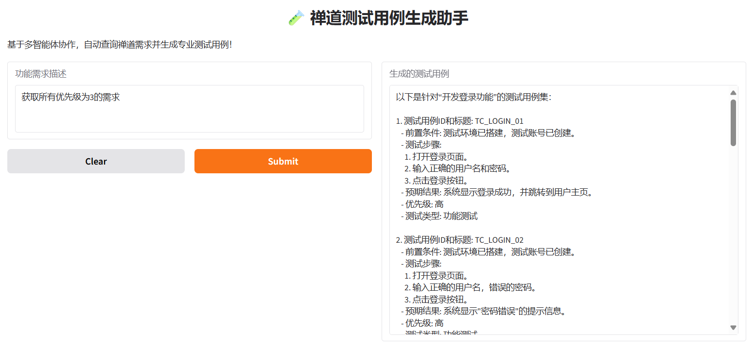 本文介绍了如何使用CrewAI多智能体框架和Gradio快速构建一个智能的禅道测试用例生成助手。该系统能够: