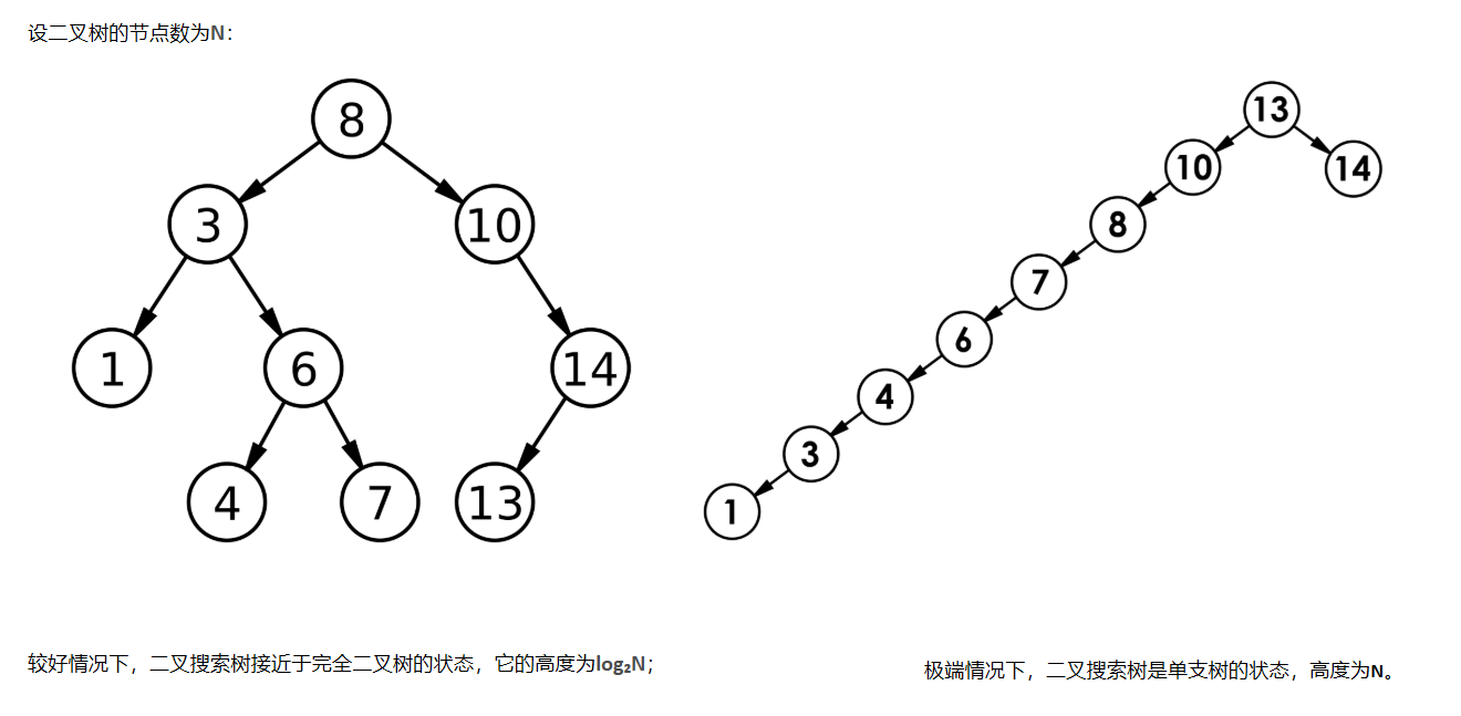 所以⼆叉搜索树增删查改时间复杂度为:O(N)