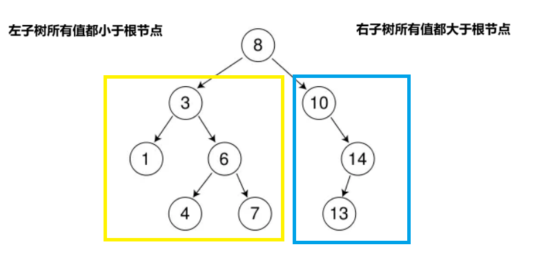 1.从根开始比较,查找的值比根的值大则往右边走查找,反之则往左边走查找。