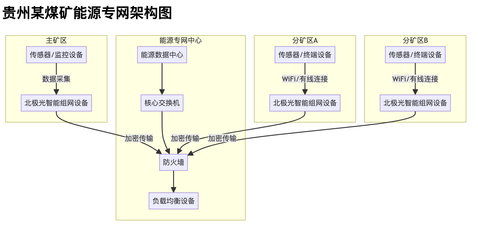 以下是贵州某煤矿能源专网接入的网络架构图,展示了智能组网设备在项目中的位置与作用: