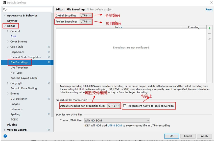 项目文件编码的设置,基本上都采用 UTF-8 编码,参考下面的设置。