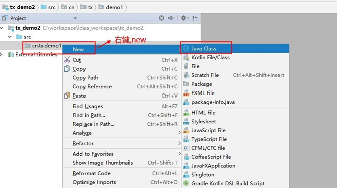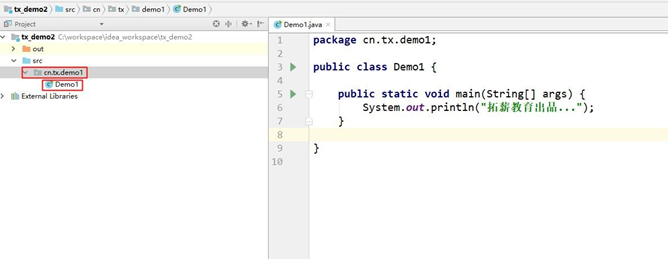 创建包结构,创建类,编写 main 主函数,在控制台输出内容。