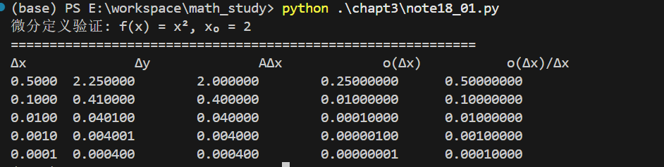 print("微分定义验证: f(x) = x², x₀ = 2")