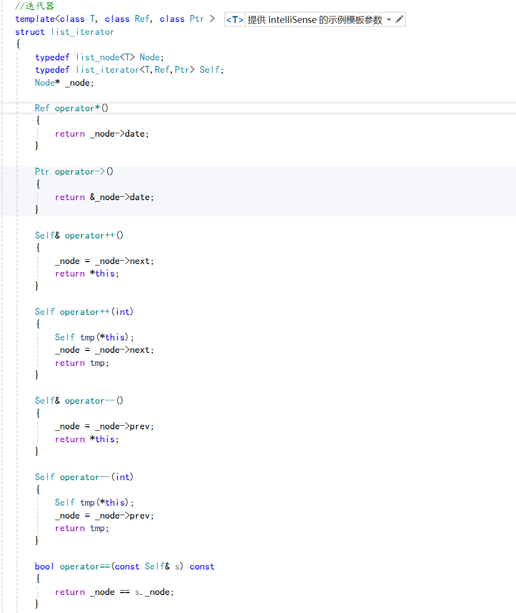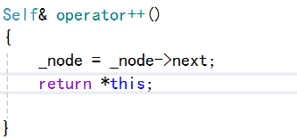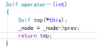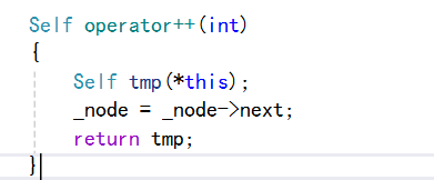 后置++的话,其返回的还是当前的位置,但是使用完后,指针的要指向下一个结点的位置,那么我们可以使用一个临时变量存储当前的位置,然后再将指针 往下一个结点移动,然后返回记录好的原来的结点的位置: